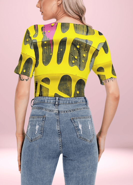 Yellow Urban Drip Graffiti Women's Short Sleeve Bodysuit