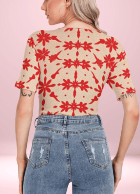 Chic in Stripes: The Red Bodysuit Look | Women's Short Sleeve Bodysuit