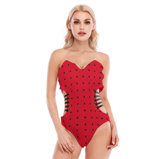 Red Dottie Diva Tube Top Bodysuit with Side Black Straps