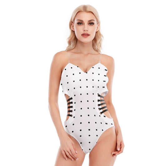 White Dottie Diva Tube Top Bodysuit with Side Black Straps