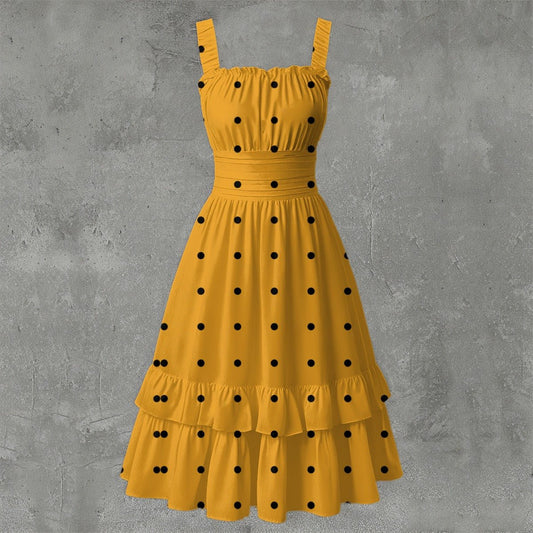 Black Polka Pleasure Orange Women‘s Ruffle Hem Dress