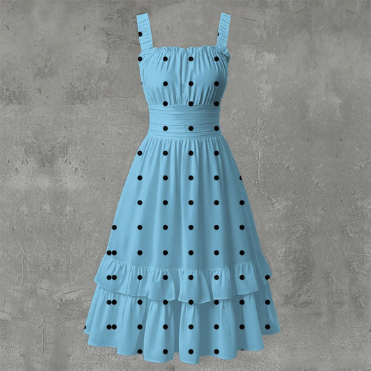 Black Polka Pleasures Baby Blue Women‘s Ruffle Hem Dress
