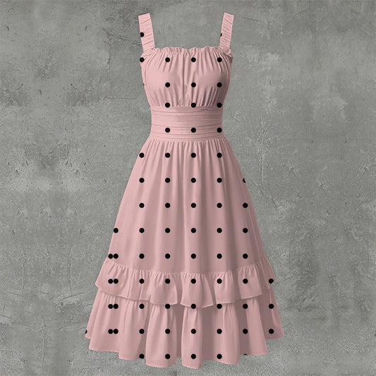 Black Polka Pleasures Baby Pink Women‘s Ruffle Hem Dress